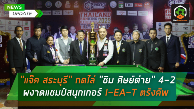 “แจ๊ค สระบุรี” เดชาวัต พุ่มแจ้ง โชว์ฟอร์มดุดันไล่สอย “ชิม ศิษย์ต่าย” กอบกิจ พลาจิณ ม้ามืดที่ห่างหายจากวงการไปกว่าหนึ่งปี ด้วยสกอร์ 4-2 เฟรม คว้าแชมป์รายการ “I-EA-T ตรังคัพ“ ศึก ไทยแลนด์ แรงค์กิ้ง เซอร์กิต 2025 ที่จังหวัดตรัง พร้อมกวาดเงินรางวัล 200,000 บาท ไปครองอย่างสมศักดิ์ศรี