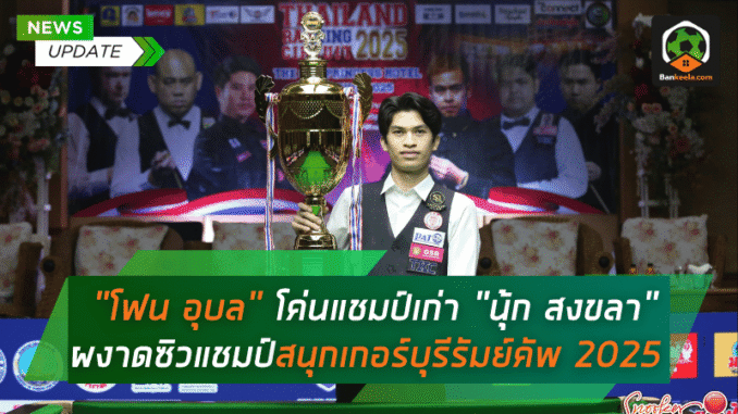 การพลิกล็อกครั้งใหญ่ของวงการ สนุกเกอร์ไทย เกิดขึ้นกลางเมืองบุรีรัมย์ เมื่อ “โฟน อุบล” ณรงค์เดช ตาขันทอง นักสอยคิวดาวรุ่งมืออันดับ 21 ของประเทศ สร้างผลงานระดับมาสเตอร์ ด้วยการหักด่านแชมป์เก่าอย่าง “นุ้ก สงขลา” กฤษณัส เลิศสัตยาทร มือวางเบอร์ 2 ของประเทศไปแบบสุดมันส์ 4-1 เฟรม ผงาดคว้าแชมป์ในรายการ I-EA-T บุรีรัมย์คัพ 2025 สนามที่ 5 ของศึก ไทยแลนด์แรงกิ้ง ดิวิชั่น 1 พร้อมกวาดเงินรางวัล 200,000 บาทเต็มกระเป๋า และจารึกชื่อเป็นแชมป์แรงกิ้งระดับประเทศครั้งแรกในชีวิตได้อย่างยิ่งใหญ่