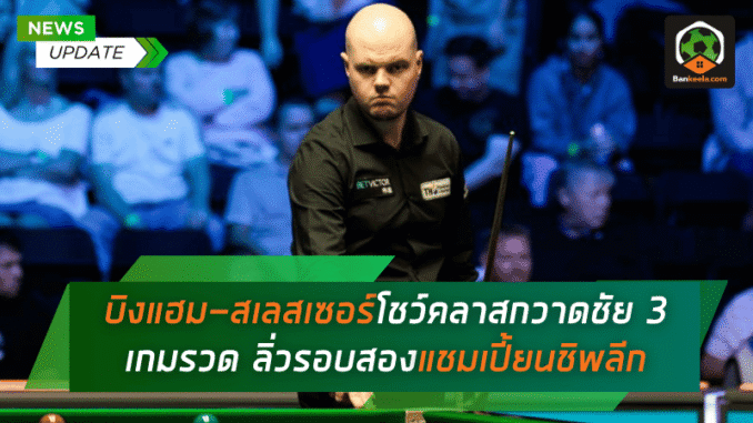 สองนักแม่นรูจอมเก๋า สจวร์ต บิงแฮม และ เอลเลียต สเลสเซอร์ ระเบิดฟอร์มสุดแกร่งในศึก BetVictor Championship League โชว์ความนิ่งและความเด็ดขาดด้วยการกวาดชัยชนะ 3 เกมรวดในรอบแบ่งกลุ่ม คว้าตั๋วเข้าสู่เฟสสองในฐานะแชมป์กลุ่มได้อย่างสง่างาม เตรียมลงล่าความสำเร็จต่อในรอบต่อไปที่เลสเตอร์ วันที่ 18 กรกฎาคมนี้