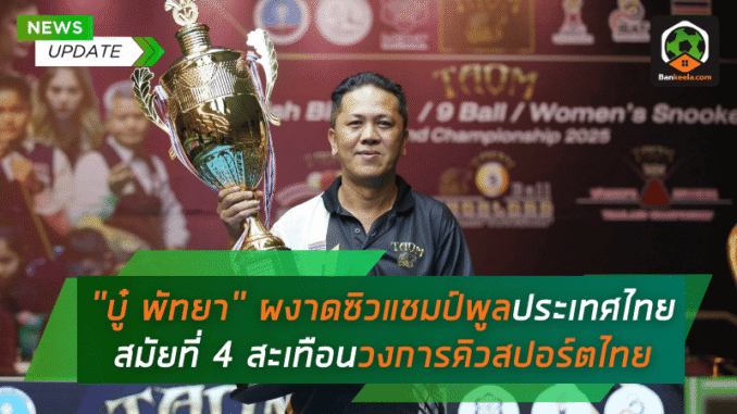 สุดยอดนักคิวระดับตำนานของไทย “บู๋ พัทยา” ปรีชา บุญม่วง อดีตทีมชาติไทยที่ยังคงความเก๋าไม่สร่าง วาดลวดลายสุดเฉียบในศึก พูลชิงชนะเลิศแห่งประเทศไทย 2568 ก่อนเอาชนะคู่แข่งรุ่นน้อง “เอ็ม พัทยา” ศรายุทธ วิชัยธรรมธร แบบขาดลอย 11-4 แร็กซ์ คว้าแชมป์ประเทศไทยไปครองเป็นสมัยที่ 4 รับเงินรางวัล 80,000 บาท ขณะที่รองแชมป์รับไป 40,000 บาท