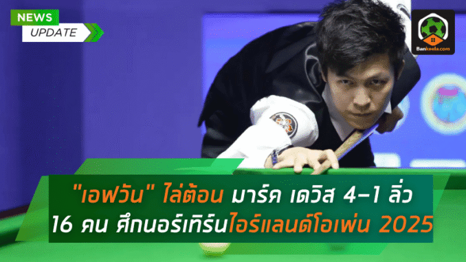 “เอฟวัน เทพไชยา อุ่นหนู” นักสนุกเกอร์ขวัญใจชาวไทย มือ 43 ของโลก โชว์ฟอร์มดุดันสมชื่อ ไล่ถล่ม มาร์ค เดวิส จากอังกฤษแบบไม่ไว้หน้า 4-1 เฟรม ทะยานเข้าสู่รอบ 16 คนสุดท้ายในศึก นอร์เทิร์นไอร์แลนด์โอเพ่น 2025 ที่กรุงเบลฟาสต์ ประเทศไอร์แลนด์เหนือ เมื่อคืนที่ผ่านมา ท่ามกลางเสียงเชียร์ของแฟนสนุกเกอร์ทั่วโลก