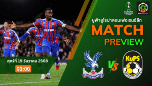 - วิเคราะห์บอลยูฟ่ายูโรปาคอนเฟอเรนซ์ลีก ระหว่าง คริสตัล พาเลซ พบ คูพีเอส 18/12/68