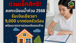 - ด่วนเช็กสิทธิ! ลงทะเบียนน้ำท่วม 2568 รับเงินเยียวยา 9,000 บาทต่อครัวเรือน พร้อมมาตรการช่วยเหลือรอบด้าน