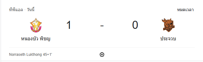 นาทีที่ 50: จบครึ่งแรก หนองบัวพิชญนำประจวบ 1-0