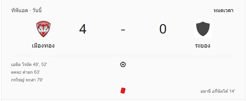 ผลบอลสด ไทยลีก 2024 ระหว่าง ทีม เมืองทอง ยูไนเต็ด vs ระยอง เอฟซี วันนี้ 16/1/68 ดูบอลย้อนหลัง คลิปไฮไลท์ ดูบอลไทยลีก 2024