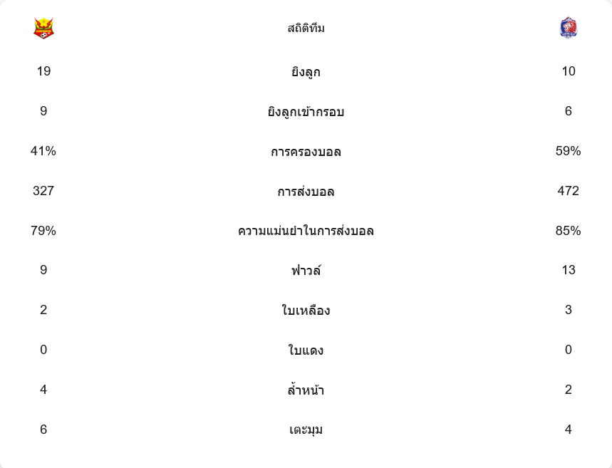 • การครองบอล: สุโขทัย 41% – 59% การท่าเรือ