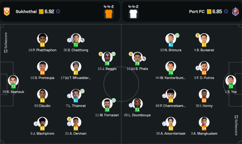สุโขทัย เอฟซี ใช้แผน 4-4-2 เน้นความแข็งแกร่งในแดนกลางและการโจมตีจากด้านข้าง เกมรับแม้จะมีข้อผิดพลาดเล็กน้อย แต่แนวรุกเล่นกันได้ดี โดยเฉพาะ บักจิโอ และ ฟอร์นาซารี ที่ประสานงานกันได้ลงตัว