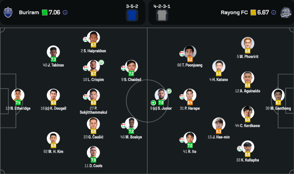บุรีรัมย์ ยูไนเต็ด เลือกใช้ระบบ 3-5-2 เน้นเกมบุกทางริมเส้นที่ดุดันและรวดเร็ว สามารถครองบอลได้เหนือกว่ามาก (78%) และคุมเกมด้วยจังหวะจ่ายบอลที่แม่นยำ (87%) ขณะที่ระยอง เอฟซี มาในระบบ 4-2-3-1 ซึ่งเน้นเกมรับเป็นหลัก แต่สุดท้ายไม่สามารถต้านทานเกมรุกที่ดุดันของบุรีรัมย์ได้ บ้านกีฬา วิเคราะห์บอล เห็นได้ชัดว่าการครองเกมในแดนกลางที่เหนือกว่าชัดเจนของบุรีรัมย์ เป็นปัจจัยสำคัญที่ช่วยให้พวกเขาเก็บชัยชนะสำคัญนี้ได้สำเร็จ