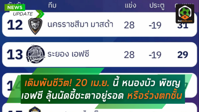 เดิมพันชีวิต! 20 เม.ย. นี้ หนองบัว พิชญ เอฟซี ลุ้นนัดชี้ชะตาอยู่รอดไทยลีก หรือร่วงตกชั้น