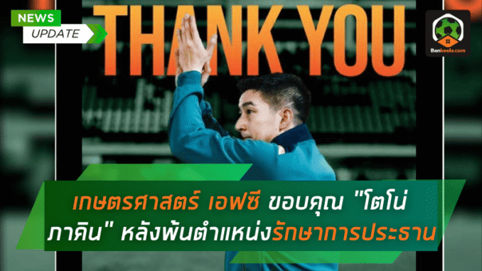 Meta Description: สโมสรเกษตรศาสตร์ เอฟซี แถลงขอบคุณ “โตโน่ ภาคิน” หลังสิ้นสุดภารกิจรักษาการประธานสโมสร ฤดูกาล 2024/25 พร้อมอวยพรให้โชคดีต่อเส้นทางใหม่ หลังพาทีมจบอันดับ 7 ด้วย 45 คะแนน