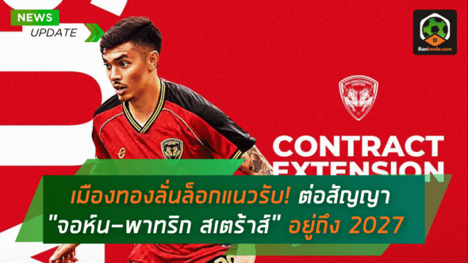 อีกหนึ่งดีลสำคัญที่สะท้อนถึงความมุ่งมั่นในการสร้างทีมเพื่ออนาคตของ เมืองทอง ยูไนเต็ด เมื่อสโมสรประกาศขยายสัญญากับ จอห์น-พาทริก สเตร้าส์ แนวรับสารพัดประโยชน์ทีมชาติฟิลิปปินส์ออกไปอีก 2 ฤดูกาลเต็ม พร้อมใส่เงื่อนไขพิเศษในการขยายสัญญาเพิ่มเติมหากผลงานเข้าตา โดยสัญญาฉบับใหม่นี้มีผลบังคับใช้ทันที และจะทำให้เขาอยู่ค้าแข้งในถิ่นธันเดอร์โดมจนถึงปี 2027 อย่างน้อย