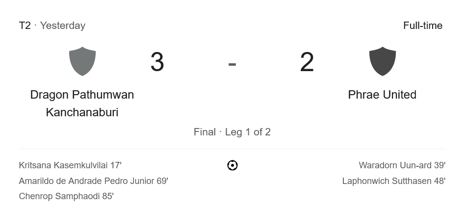 • ⚽ 48′ ลาภอนวิช สุทธิเสน ยิงให้แพร่พลิกแซงนำ 1-2