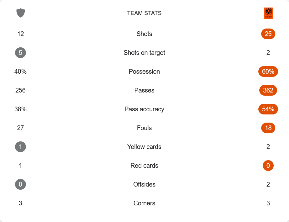 แม้ราชบุรีจะเหนือกว่าทางสถิติในหลายด้าน โดยเฉพาะการครองบอลที่มากถึง 60% และจำนวนโอกาสยิงถึง 25 ครั้ง แต่พวกเขากลับยิงตรงกรอบเพียง 2 ครั้งเท่านั้น ขณะที่ลำพูนมีเพียง 12 ครั้ง แต่เข้ากรอบถึง 5 ครั้ง และเปลี่ยนเป็นประตูได้ในที่สุด จำนวนการจ่ายบอลก็เป็นรองชัดเจนเพียง 256 ครั้ง เทียบกับราชบุรีที่ทำได้ถึง 362 ครั้ง พร้อมกับความแม่นยำที่ลำพูนมีเพียง 38% เท่านั้น แต่เกมรับของพวกเขาสู้ด้วยใจล้วน ๆ ฟาวล์รวมถึง 27 ครั้ง แสดงให้เห็นถึงความมุ่งมั่นในการเบรกเกม ขณะที่ราชบุรีเล่นสะอาดกว่าด้วย 18 ฟาวล์ และเป็นฝ่ายได้ใบเหลือง 2 ใบ ไม่มีใบแดง ต่างจากลำพูนที่โดนไล่ออกในช่วงต่อเวลา