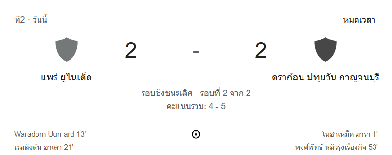 ทดเวลาครึ่งแรก 8 นาที : แม้จะบุกหนักทั้งสองฝั่ง แต่ยังไม่มีประตูเพิ่ม จบครึ่งแรก แพร่ ยูไนเต็ด นำ พลังกาญจน์ เอฟซี 2-1