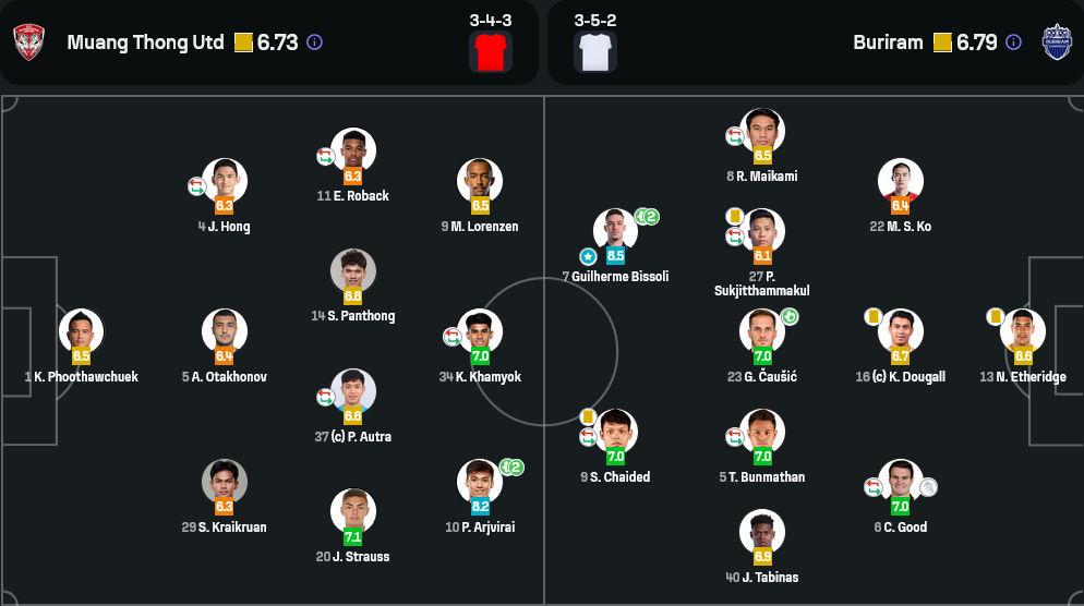 ทั้งสองทีมเลือกใช้แผนที่เน้นเกมรุกเป็นหลัก เมืองทองในระบบ 3-4-3 มีความเร็วและพลิ้วของแนวรุกอย่างโรแบ็คและอาจวีไรวรรณเป็นอาวุธหลัก พร้อมด้วยเกมริมเส้นจากศุภกรและศุพรที่คอยสนับสนุน เกมรับแม้จะวางหลังสามแต่ยังมีจุดอ่อนจากการเสียจุดโทษถึงสองครั้ง ส่วนฝั่งบุรีรัมย์มาในระบบ 3-5-2 ที่เน้นครองแดนกลางและคุมจังหวะได้อยู่หมัด การประสานของบิสโซลี่, ศุภชัย และเคาซิช ส่งผลชัดในแนวรุก พวกเขาใช้เกมสวนกลับเร็วได้อย่างมีประสิทธิภาพ และเฉียบคมในพื้นที่สุดท้าย การ วิเคราะห์บอล แสดงให้เห็นว่าความนิ่งและจังหวะเกมที่ชัดเจนของบุรีรัมย์คือกุญแจสำคัญในการคว้าชัยนัดนี้