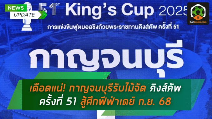 สมาคมกีฬาฟุตบอลแห่งประเทศไทยฯ เดินหน้าสานต่อศึกฟุตบอลรายการใหญ่ของชาติอย่างเต็มภาคภูมิ ล่าสุดประกาศเลือก จังหวัดกาญจนบุรี เป็นเจ้าภาพจัดการแข่งขัน ฟุตบอลชิงถ้วยพระราชทานคิงส์คัพ ครั้งที่ 51 ประจำปี 2568 อย่างเป็นทางการ ซึ่งจะฟาดแข้งระหว่างวันที่ 1-9 กันยายน 2568 ตรงกับช่วง ฟีฟ่าเดย์ โดยงานนี้แฟนบอลทั้งประเทศเตรียมสัมผัสบรรยากาศเกมระดับนานาชาติในสนามกีฬากลางจังหวัดกาญจนบุรี (กลีบบัว) ที่จุผู้ชมได้กว่า 7,800 ที่นั่ง พร้อมกระหึ่มเสียงเชียร์ให้สะเทือนไปทั้งเมือง
