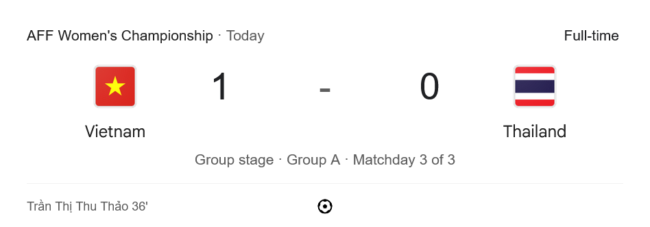 ศึกอาเซียนฟุตบอลหญิงแชมเปียนชิพ รอบแบ่งกลุ่ม กลุ่ม A นัดสุดท้าย แฟนๆ บ้านกีฬา ได้รับชมเกมที่เต็มไปด้วยความเข้มข้น เมื่อ ทีมชาติเวียดนามหญิง ดวลเดือดกับ ทีมชาติไทยหญิง เพื่อชี้ชะตาแชมป์กลุ่ม ซึ่งผล ผลบอลสด จากสนามจบลงด้วยชัยชนะของเวียดนาม 1-0 ส่งพวกเธอเข้ารอบในฐานะแชมป์กลุ่ม เก็บ 9 คะแนนเต็มจาก 3 นัด ส่วนไทยเข้ารอบเป็นอันดับสอง