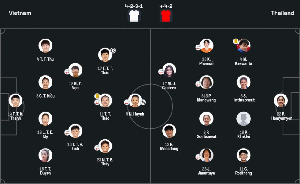 🔄 89’ เวียดนามเปลี่ยน N. T. Vạn ออก, ส่ง L. T. T. Thương / ตรัน ถิ ทู เถา ออก, ส่ง N. T. Trúc Hương