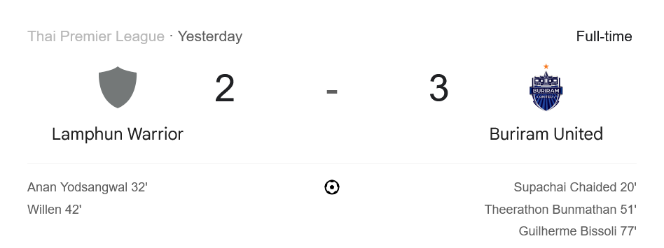การแข่งขันฟุตบอล BYD Sealion 6 League 1 ประจำวันที่ 16 สิงหาคม 2568 เปิดฉากแบบเดือดระอุเมื่อ Lamphun Warrior เปิดรังรับการมาเยือนของ Buriram United โดยผลการแข่งขันจบลงด้วยชัยชนะของทีมแชมป์เก่า บุรีรัมย์ ที่บุกมาเฉือนชนะ 3-2 พร้อมคว้า 3 แต้มแรก ไปครองแบบสุดมันส์ ตามเสียงเชียร์ของแฟนๆ ที่ติดตาม ผลบอลสด แบบใจจดใจจ่อ