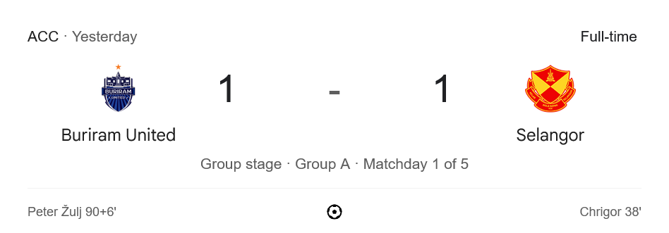 ศึกชิงแชมป์สโมสรอาเซียน กลุ่ม A ระหว่าง บุรีรัมย์ ยูไนเต็ด ปะทะ เซลังกอร์ พีบี จบลงด้วยผลบอลสดที่ทำแฟนบอลใจหายใจคว่ำ เมื่อ “ปราสาทสายฟ้า” ต้องรอจนถึงนาทีสุดท้ายก่อนที่ ปีเตอร์ ซูลญ์ จะซัดจุดโทษนาที 90+6 พาทีมไล่ตีเสมอ 1-1 เก็บแต้มสำคัญประเดิมทัวร์นาเมนต์ได้แบบสุดดราม่า