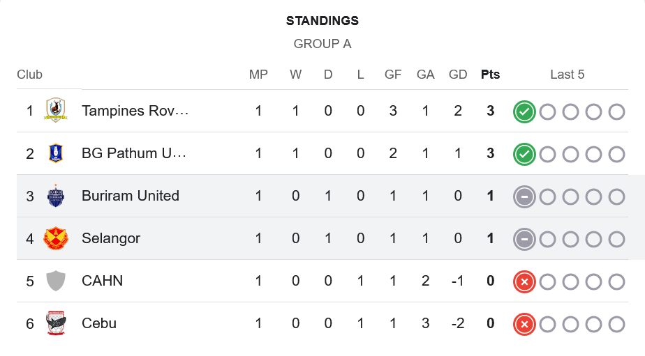 ผลเสมอ 1-1 ทำให้ บุรีรัมย์ ยูไนเต็ด และ เซลังกอร์ พีบี มีทีมละ 1 คะแนน อยู่อันดับ 3 และ 4 ของกลุ่ม A ตามหลัง บีจี ปทุม ยูไนเต็ด และ แทมปิเนส โรเวอร์ส ที่ชนะนัดแรก ทำให้ทั้งสองทีมต้องเร่งเก็บชัยชนะในเกมต่อไปเพื่อโอกาสเข้ารอบ