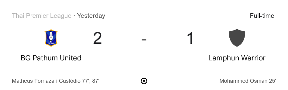 จาก : ผลบอลสด ไทยลีก BYD sealion 6 league 1 ระหว่าง บีจี ปทุม ยูไนเต็ด 2-1 ลำพูน วอร์ริเออร์ วันนี้ 23/8/68 – บ้านกีฬา