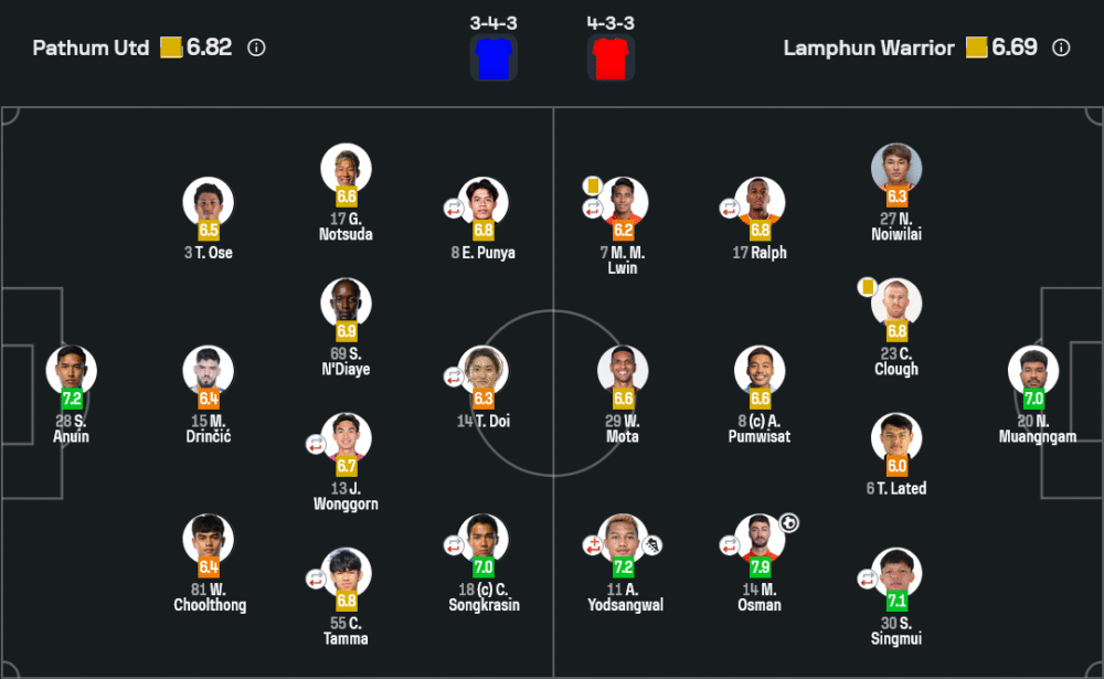 ฝั่งลำพูนวาง 4-3-3 วินัยเกมรับแน่น สองมิดฟิลด์ตัวรับอย่าง โมต้า กับ พุมวิสาทหุบต่ำปิดช่องเซราะห์แดนกลาง โจทย์คือเมื่อโดนเพรสหนัก ทีมเสียการครองและออกบอลช้า พอล้าในช่วงท้าย ความกะทัดรัดเริ่มหาย ช่องว่างหน้ากรอบถูก ฟอร์นาซารี ใช้ลงโทษสองครั้งติด มุมมองเชิง วิเคราะห์บอล จึงชี้ว่า “ขนาดและม้านั่งสำรอง” คือจุดต่างที่ตัดสินเกม