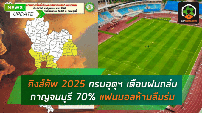 คิงส์คัพ 2025 ลุ้นมันส์กลางสายฝน! กรมอุตุฯ เตือนฝนถล่มกาญจนบุรี 70% แฟนบอลห้ามลืมร่ม