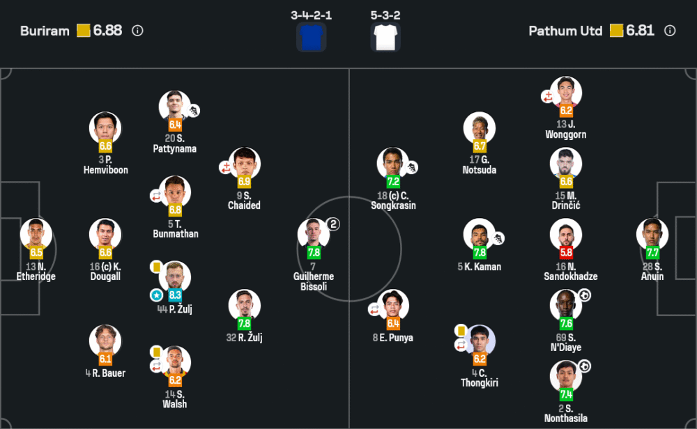 ปีเตอร์ ซูลจ์ มิดฟิลด์ของบุรีรัมย์ ยูไนเต็ด ได้คะแนนสูงสุด 8.3 คุมเกมกลางสนาม สร้างโอกาสและผ่านบอลแม่นยำสูง ถือเป็นหัวใจสำคัญที่ทำให้ทีมไม่พ่ายคาบ้าน