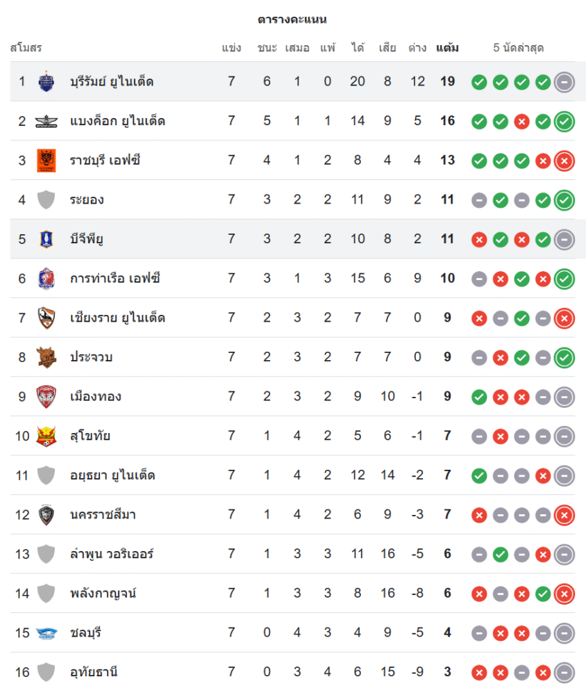 ผลเสมอนัดนี้ทำให้บุรีรัมย์ ยูไนเต็ด ยังนำจ่าฝูงด้วย 19 แต้มจาก 7 นัด แต่ช่องว่างกับรองจ่าฝูง แบงค็อก ยูไนเต็ด หดเหลือ 3 คะแนน ส่วนบีจี ปทุม ยูไนเต็ด เก็บเพิ่มเป็น 11 แต้ม รั้งอันดับ 5 ยังเกาะกลุ่มบนแต่ต้องเร่งเครื่องเพื่อลุ้นพื้นที่เอเชีย