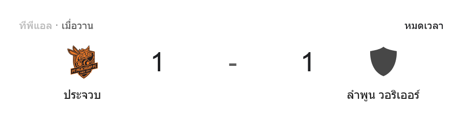 - 🔚 จบเกม พีที ประจวบ เอฟซี 1-1 ลำพูน วอร์ริเออร์ แบ่งกันทีมละแต้มสุดเดือด