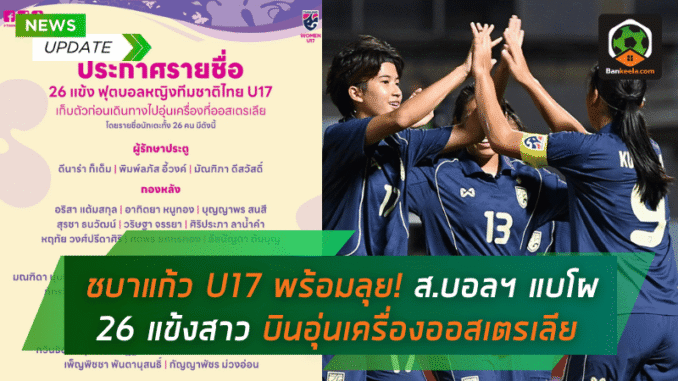 สมาคมกีฬาฟุตบอลแห่งประเทศไทย ในพระบรมราชูปถัมภ์ ประกาศรายชื่อ 26 นักฟุตบอลหญิงทีมชาติไทย รุ่นอายุไม่เกิน 17 ปี ภายใต้การคุมทีมของ “โค้ชมิ่ม ธิดารัตน์ วิวาสุขุ” เพื่อเข้าแคมป์เก็บตัวและเตรียมเดินทางไปอุ่นเครื่อง 2 นัดกับทีมชาติออสเตรเลีย U17 ระหว่างวันที่ 22–28 พฤศจิกายน 2568 ณ นครซิดนีย์ ประเทศออสเตรเลีย
