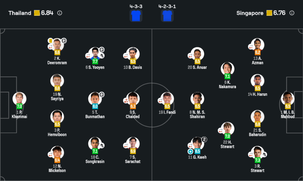🧑🤝🧑 รายชื่อนักเตะตัวจริง + คะแนนดาวเด่น
