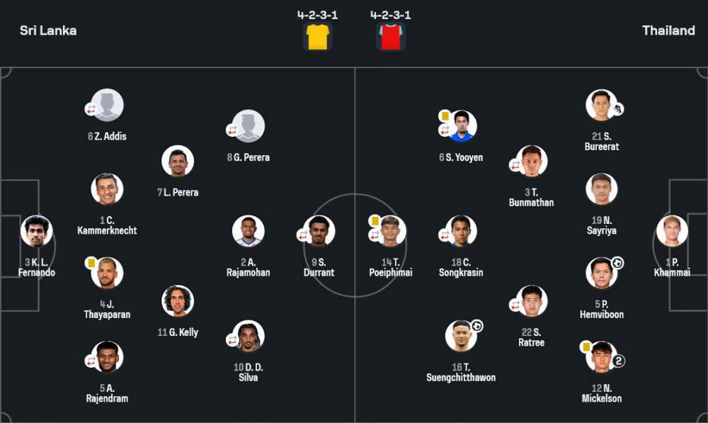 ฝั่งศรีลังกาเกมรับมีปัญหาชัดเจน โดยเฉพาะวิงแบ็กและเซนเตอร์ที่เสียตำแหน่งง่าย ทำให้ถูกเจาะซ้ำๆ ตลอด 90 นาที