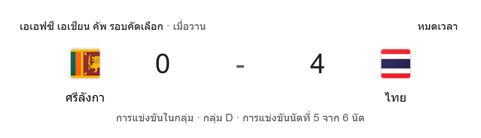 จาก : ผลบอลสด เอเชียน คัพ ระหว่าง ศรีลังกา 0-4 ไทย วันนี้ 18/11/68 – บ้านกีฬา
