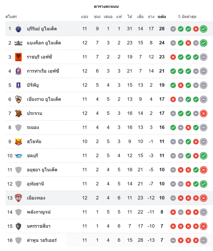 📊 สถานการณ์ในตารางคะแนนไทยลีก 1