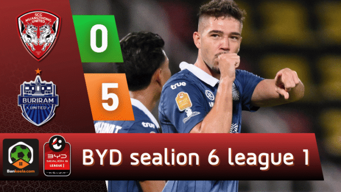 บ้านผลบอล สรุปหลังเกม ไทยลีก 1 บุกถล่มเละ! บุรีรัมย์ ยูไนเต็ด ดุจัด ยิงกระหน่ำเมืองทอง ยูไนเต็ด 5-0 รั้งจ่าฝูงแบบโหดๆ
