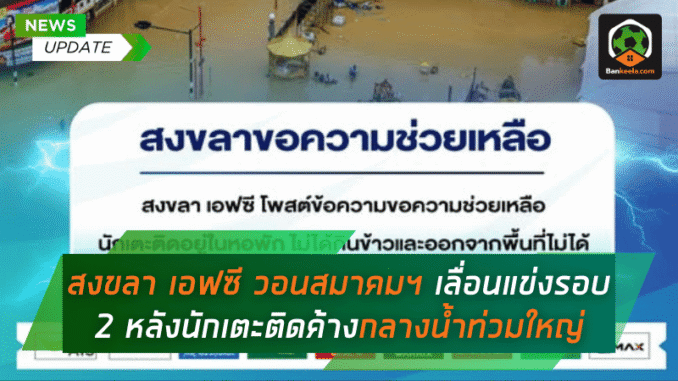 สถานการณ์ น้ำท่วมสงขลา–หาดใหญ่ ทวีความรุนแรงต่อเนื่องจนส่งผลกระทบโดยตรงต่อสโมสร สงขลา เอฟซี ที่ปัจจุบันมีนักเตะจำนวนมากติดค้างอยู่ในที่พัก ไม่สามารถเดินทางออกมาได้ เนื่องจากระดับน้ำในหลายพื้นที่อำเภอหาดใหญ่ยังคงสูงต่อเนื่อง บางจุดพุ่งขึ้นถึง 2.5 เมตร ทำให้การเดินทางทุกเส้นทางแทบเป็นไปไม่ได้ ความปลอดภัยของผู้เล่นจึงกลายเป็นเรื่องสำคัญที่สุดในเวลานี้