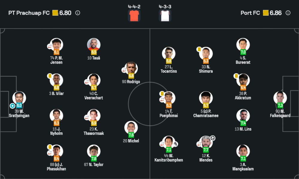 • 🔁 85′-90+ การท่าเรือ เปลี่ยน ณัฐกฤต โภศรี, ฮูโก้ บูทสิงข์คำ และ ธนบูรณ์ เกษรัตน์ ลงมาช่วยปิดเกม