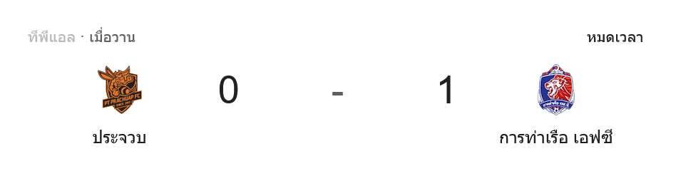 จาก : ผลบอลสด ไทยลีก ระหว่าง พีที ประจวบ เอฟซี 0-1 การท่าเรือ เอฟซี วันนี้ 28/11/68 – บ้านกีฬา