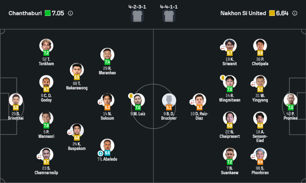 - ธัชนนท์ นคราวงศ์ (6.5) ตัดเกมกลางสนาม ช่วยคุมจังหวะบุก-รับ