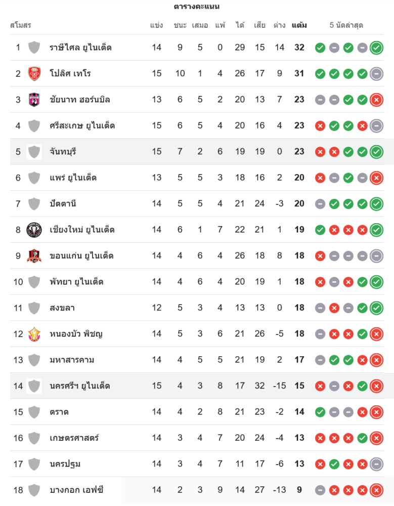 ส่วนนครศรียูไนเต็ด สถานการณ์เริ่มน่าเป็นห่วง ลงเล่น 15 นัด มีเพียง 15 คะแนน รั้งอันดับ 14 ประตูได้เสีย -15 และฟอร์มช่วงหลังออกอาการแผ่ว หากไม่เร่งแก้ปัญหาเกมรุกที่จบสกอร์ไม่คม มีสิทธิ์ต้องเข้าโหมดลุ้นหนีตกชั้นแบบเต็มตัวในโค้งต่อไปของฤดูกาล
