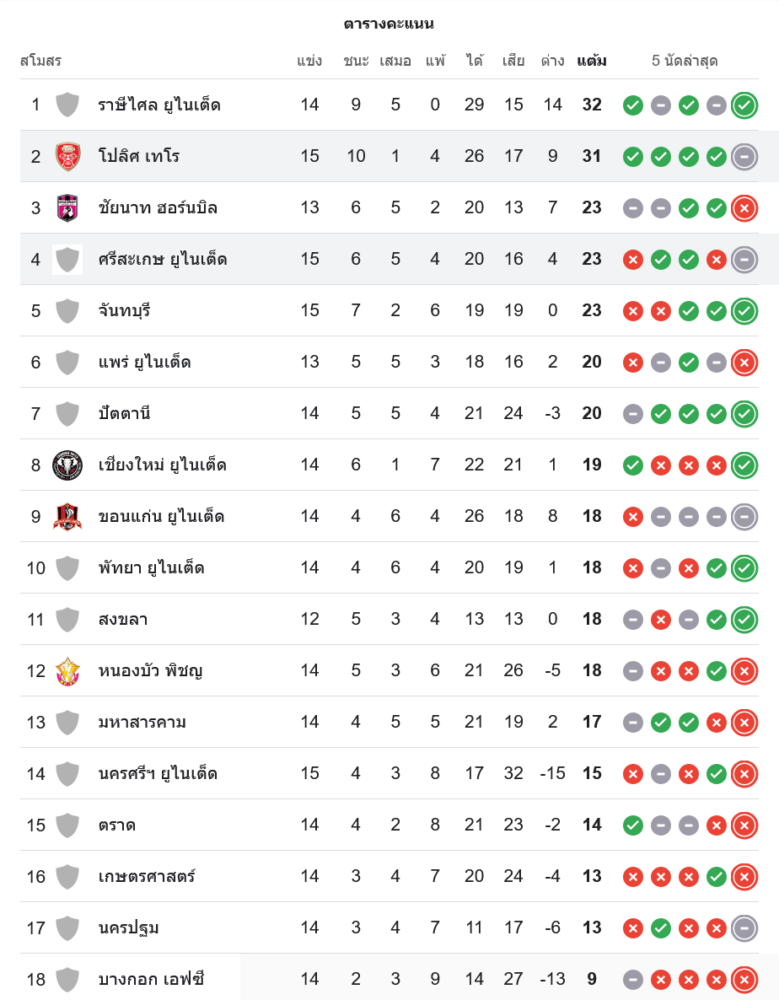 หลังจบเกมนี้ ราษีไศล ยูไนเต็ด ยังนำเป็นจ่าฝูงที่ 32 คะแนน ส่วน โปลิศ เทโร เอฟซี เก็บเพิ่มเป็น 31 แต้มจาก 15 นัด รั้งรองจ่าฝูงตามเดิม ไล่กดดันจ่าฝูงหายใจรดต้นคอ