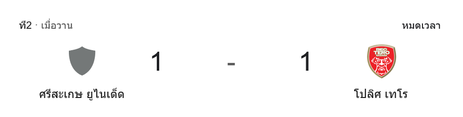 - ⏱ จบเกม ศรีสะเกษ ยูไนเต็ด 1-1 โปลิศ เทโร เอฟซี