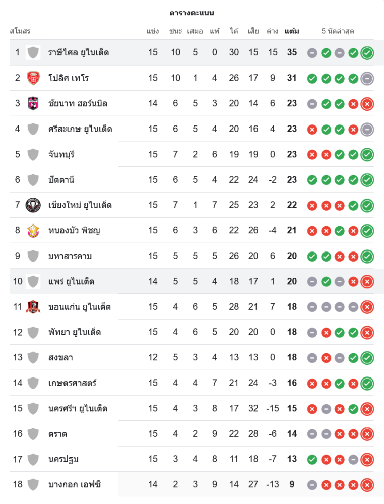📈 สถานการณ์ในตารางคะแนนไทยลีก 2
