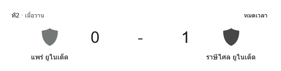 - 🔁 นาที 62 – แพร่ ยูไนเต็ด ส่ง นิลซง ลงแทน ฮูโก้ ไคอง หวังเปลี่ยนเกมรุกให้คมขึ้น