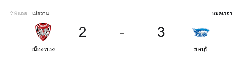 - 🔔 จบเกม เมืองทอง ยูไนเต็ด แพ้ ชลบุรี เอฟซี 2-3