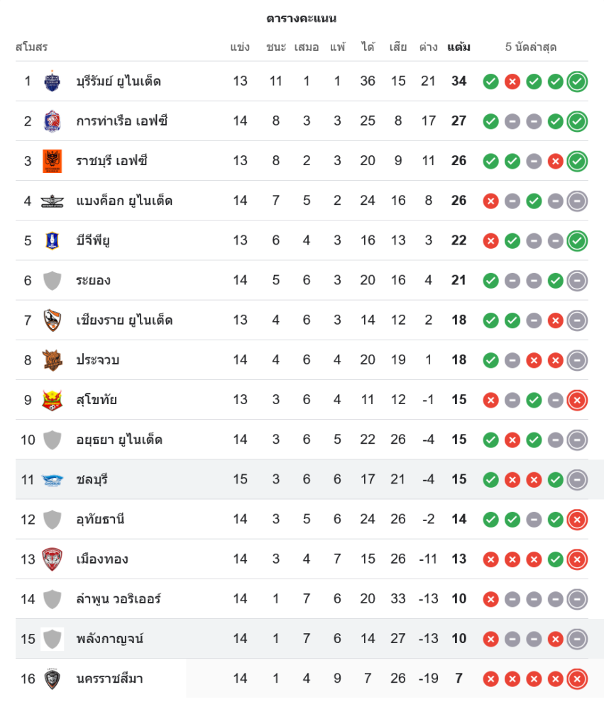 📈 สถานการณ์ในตารางคะแนนไทยลีก
