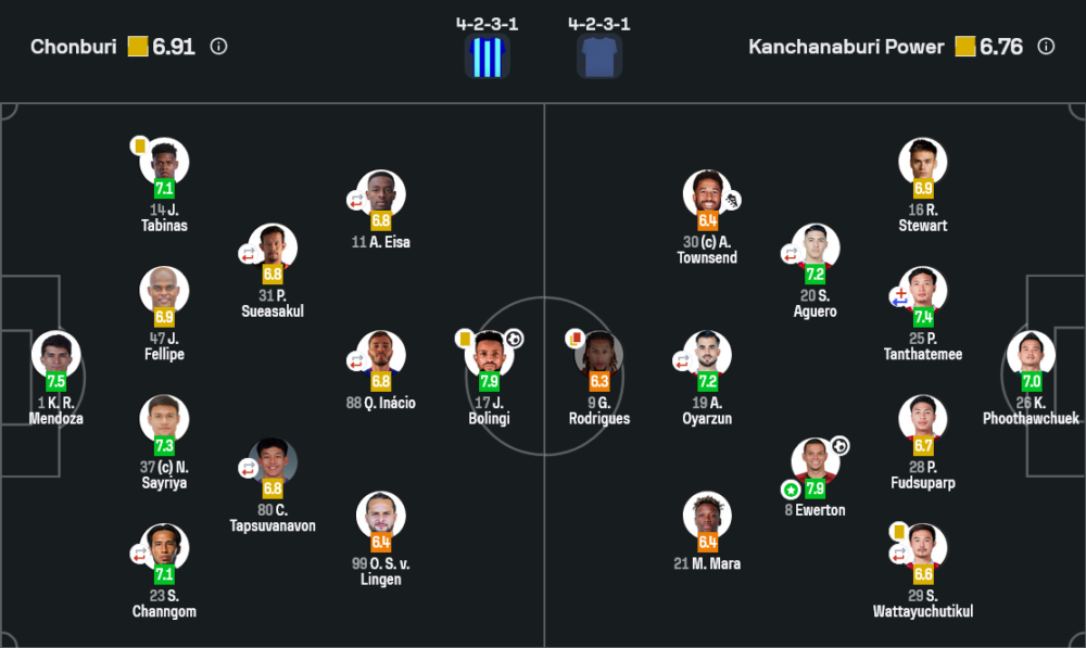 📋 รายชื่อ 11 ตัวจริง นักเตะโดดเด่น และการเปลี่ยนตัว