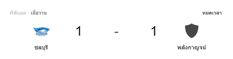 จาก : ผลบอลสด ไทยลีก ระหว่าง ชลบุรี เอฟซี 1-1 พลังกาญจน์ วันนี้ 12/12/68 – บ้านกีฬา